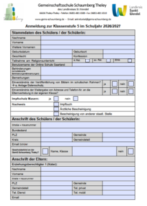 Anmeldung für die Klassenstufe 5 (Schuljahr 26/27)