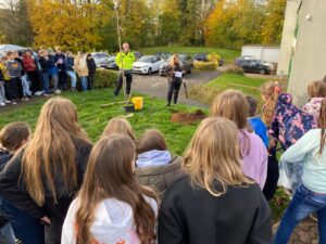 Am Mittwoch, den 29. Oktober 2025 fand die traditionelle Baumpflanzung für die 146 neuen Fünftklässler in einer Wiese am Rand des Schulhofes der Gemeinschaftsschule statt. Dieser schöne Brauch wird bereits seit über 25 Jahren jährlich als „Aufnahmeritual“ für die Schulneulinge durchgeführt. In ihrer Ansprache betonte Schulleiterin Ute Strozynski die Symbolträchtigkeit der Jahrgangsbaumpflanzung, denn so wie