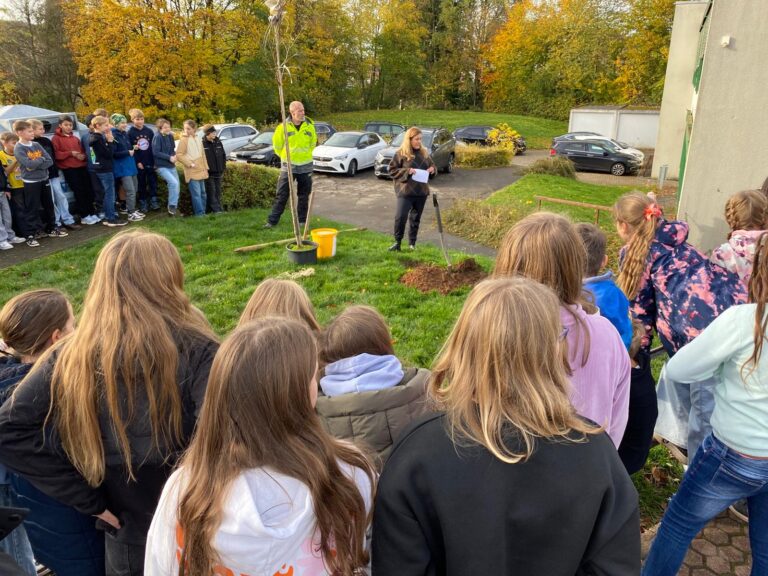 Am Mittwoch, den 29. Oktober 2025 fand die traditionelle Baumpflanzung für die 146 neuen Fünftklässler in einer Wiese am Rand des Schulhofes der Gemeinschaftsschule statt. Dieser schöne Brauch wird bereits