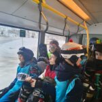 Dann sind wir um 8:05 Uhr in den Skiankleideraum gegangen. Anschließend sind wir zum Bus gelaufen. Nach der schönen Busfahrt sind wir in die 12er Kogel Bahn eingestiegen. Als wir ganz oben am Gipfel angekommen sind, sind wir erstmal die blaue Piste gefahren.