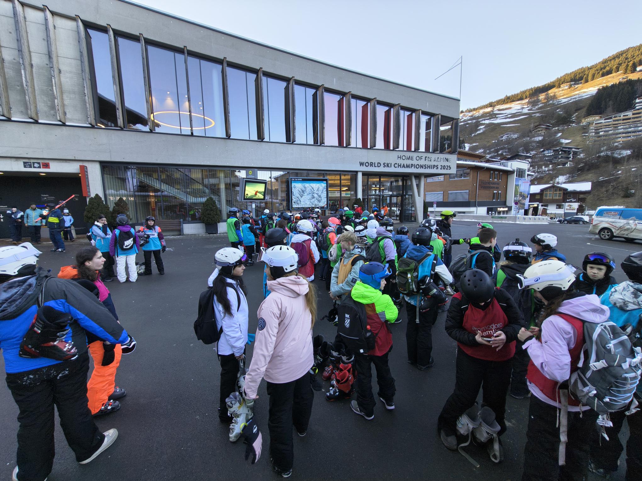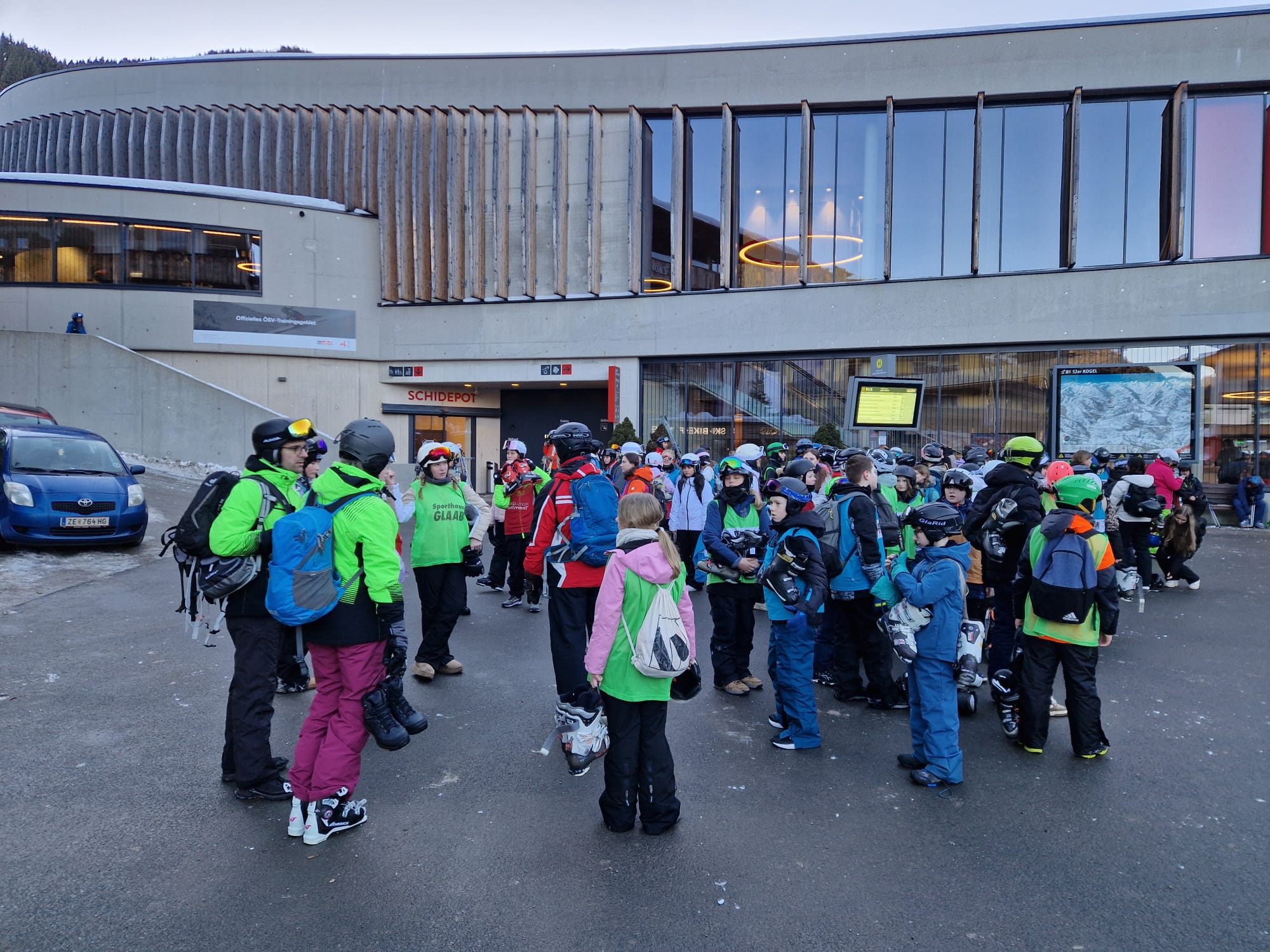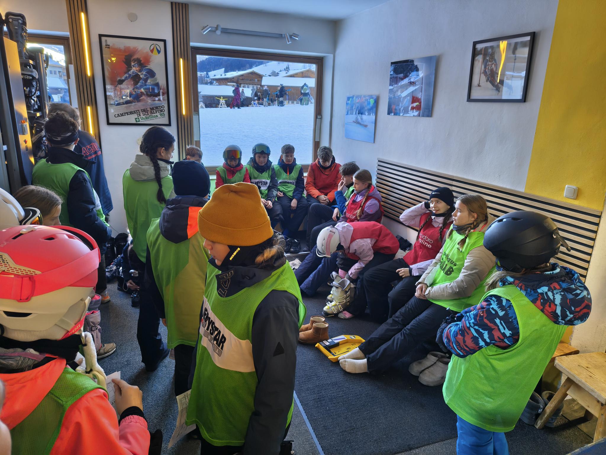 08:25 Uhr: 1. Gruppe zur Skiausleihe