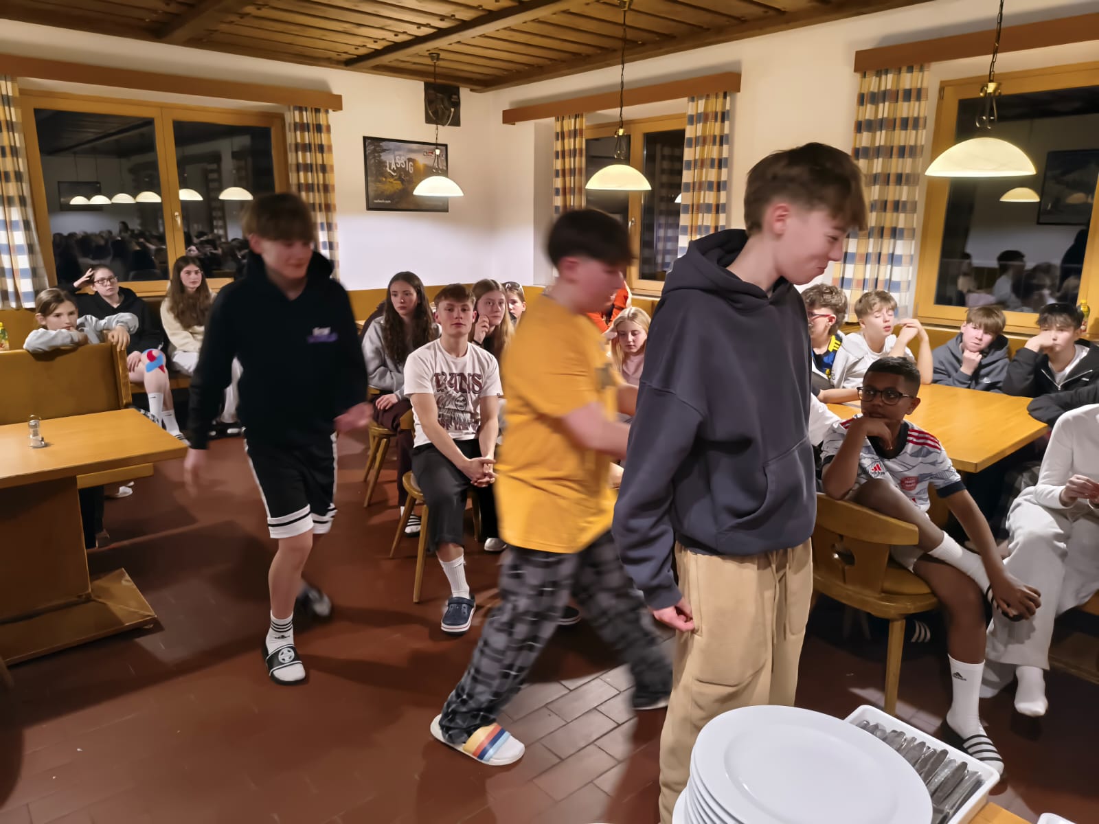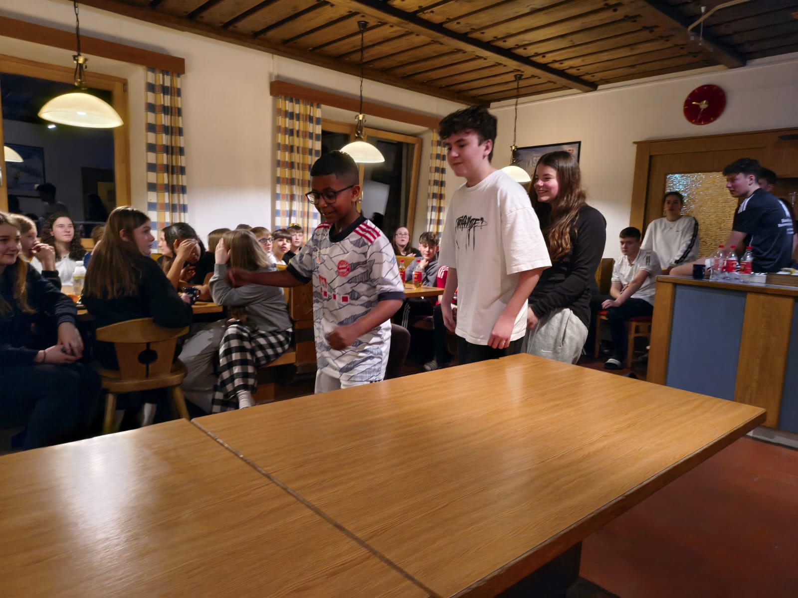 Anschließend mussten wir die Zimmer aufräumen und konnten wieder nach unten gehen, um gemeinsam Regeln und Spiele zu machen. Danach war Nachtruhe und Schlafenszeit.