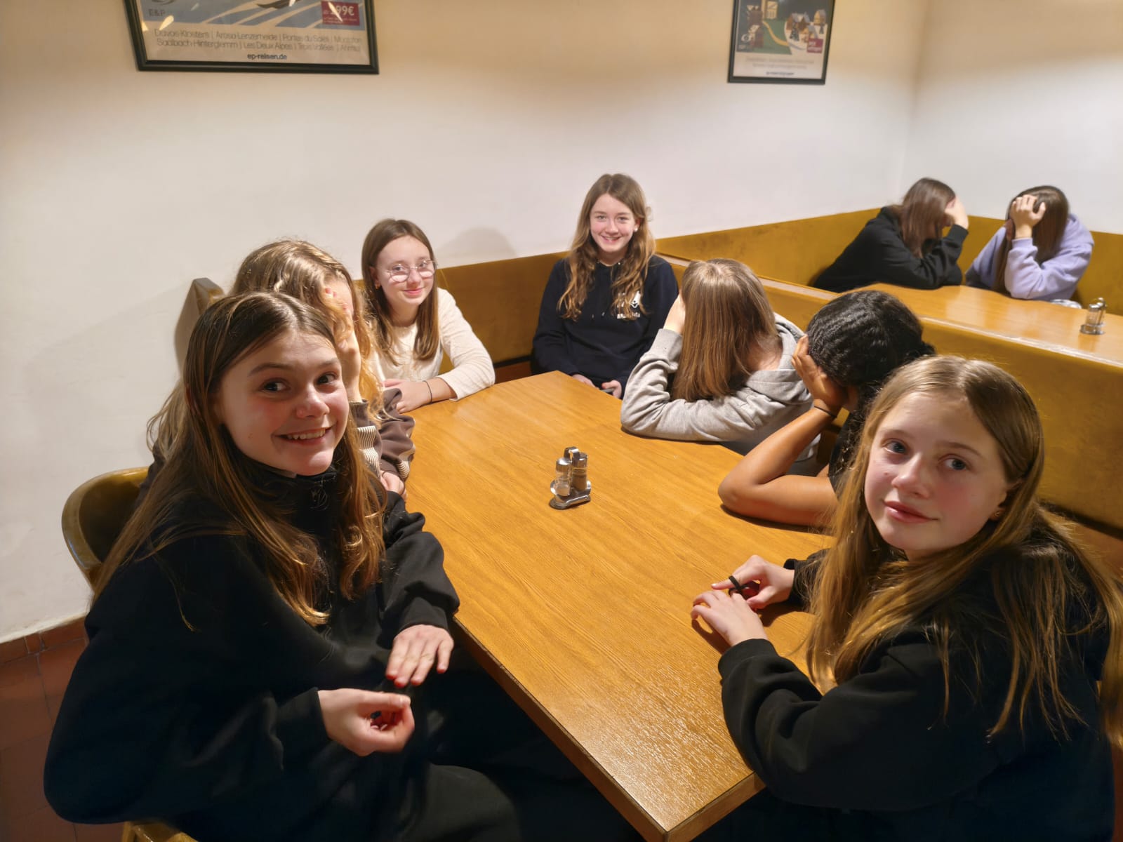 Als wir wieder im Hotel zurück waren, war Duschzeit. Wegen der vielen Leute musste man sich lange anstellen, aber schließlich hat es jeder in die Dusche geschafft. Danach gab es Abendessen. Nach dem langen Tag waren alle hungrig, aber zufrieden.
