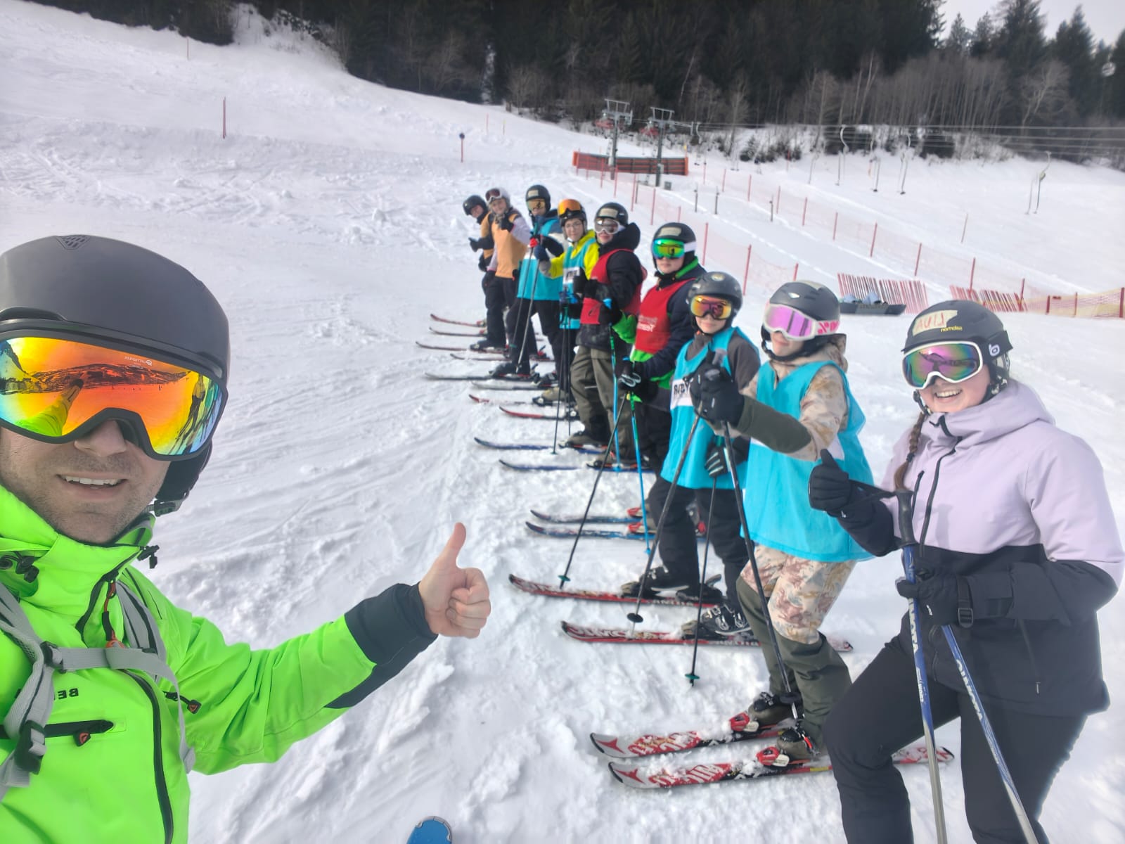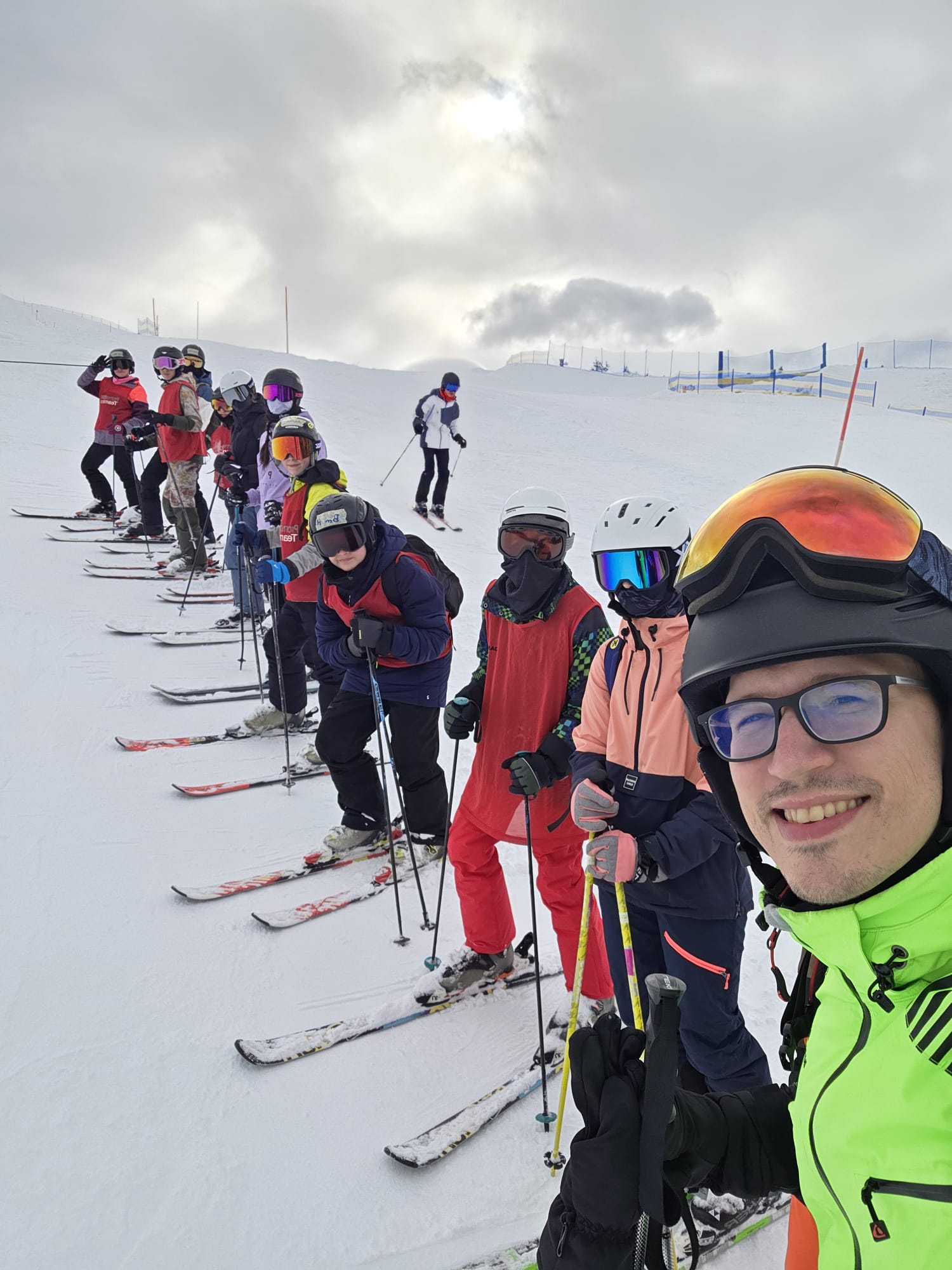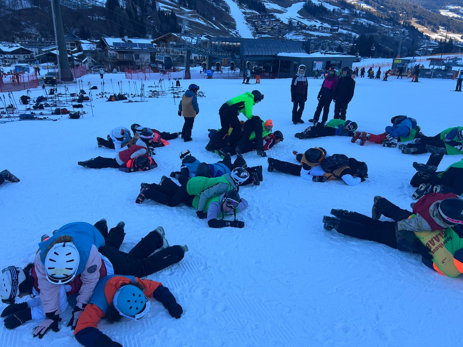 Dann sind wir bei bestem Wetter auf den Anfängerhügel gegangen, wo wir in Gruppen Anfängerübungen gemacht haben. Nach einem langen Tag voller Spaß und Quatsch, aber auch mit viel Gelerntem, ging der Tag schließlich vorbei.