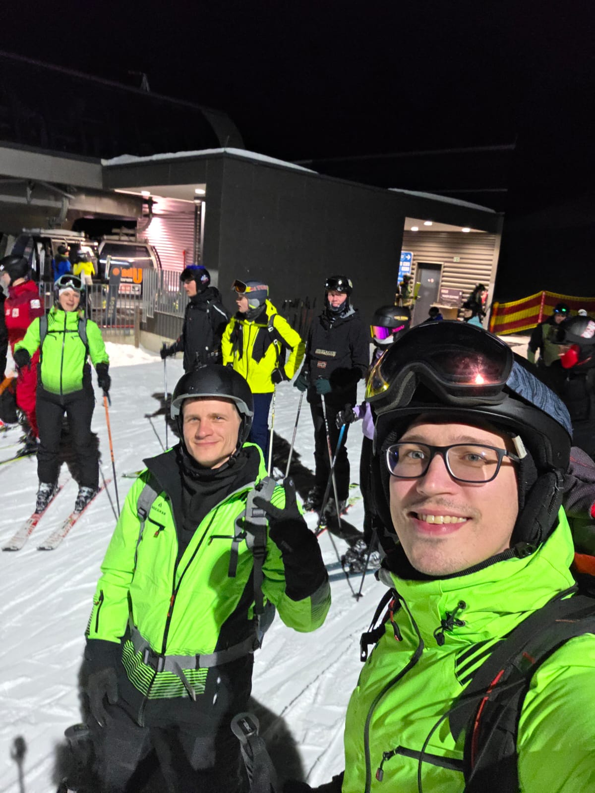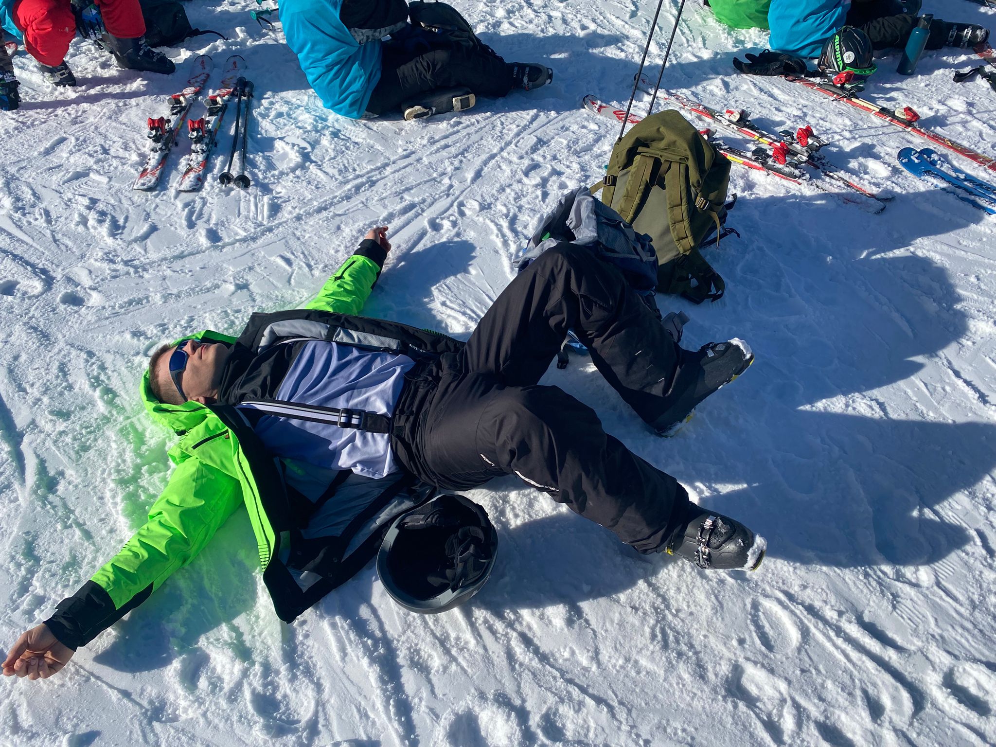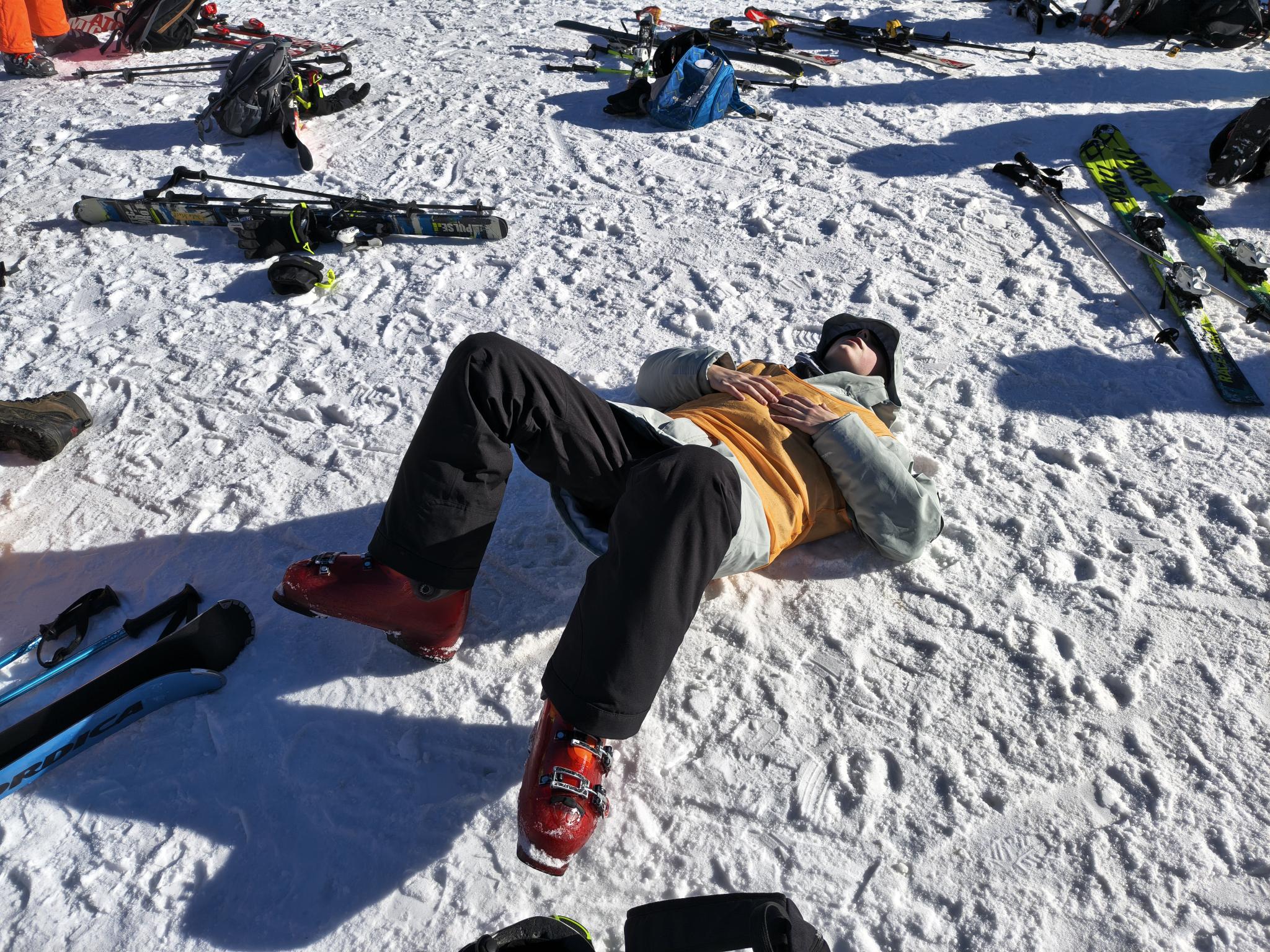 Dann sind wir bei bestem Wetter auf den Anfängerhügel gegangen, wo wir in Gruppen Anfängerübungen gemacht haben. Nach einem langen Tag voller Spaß und Quatsch, aber auch mit viel Gelerntem, ging der Tag schließlich vorbei.