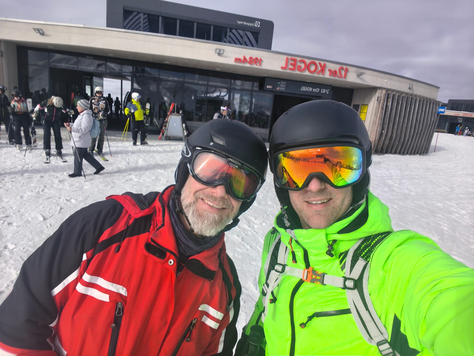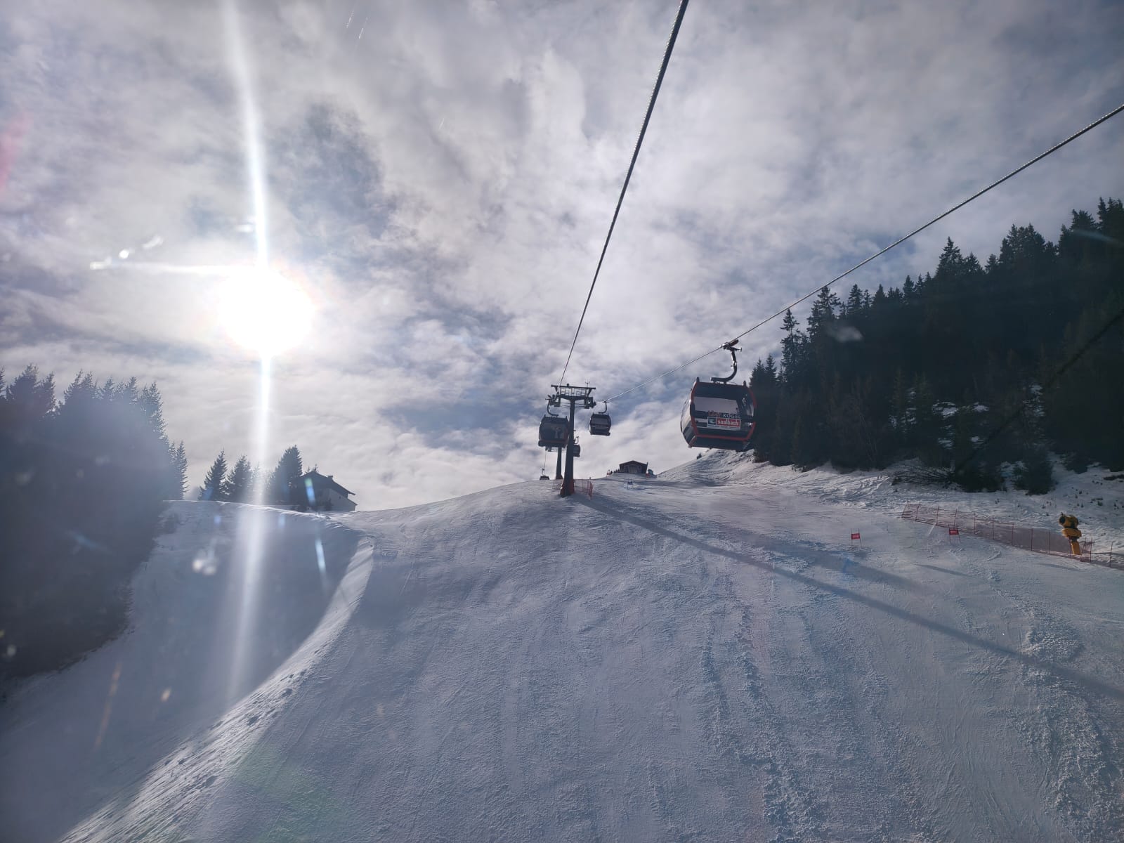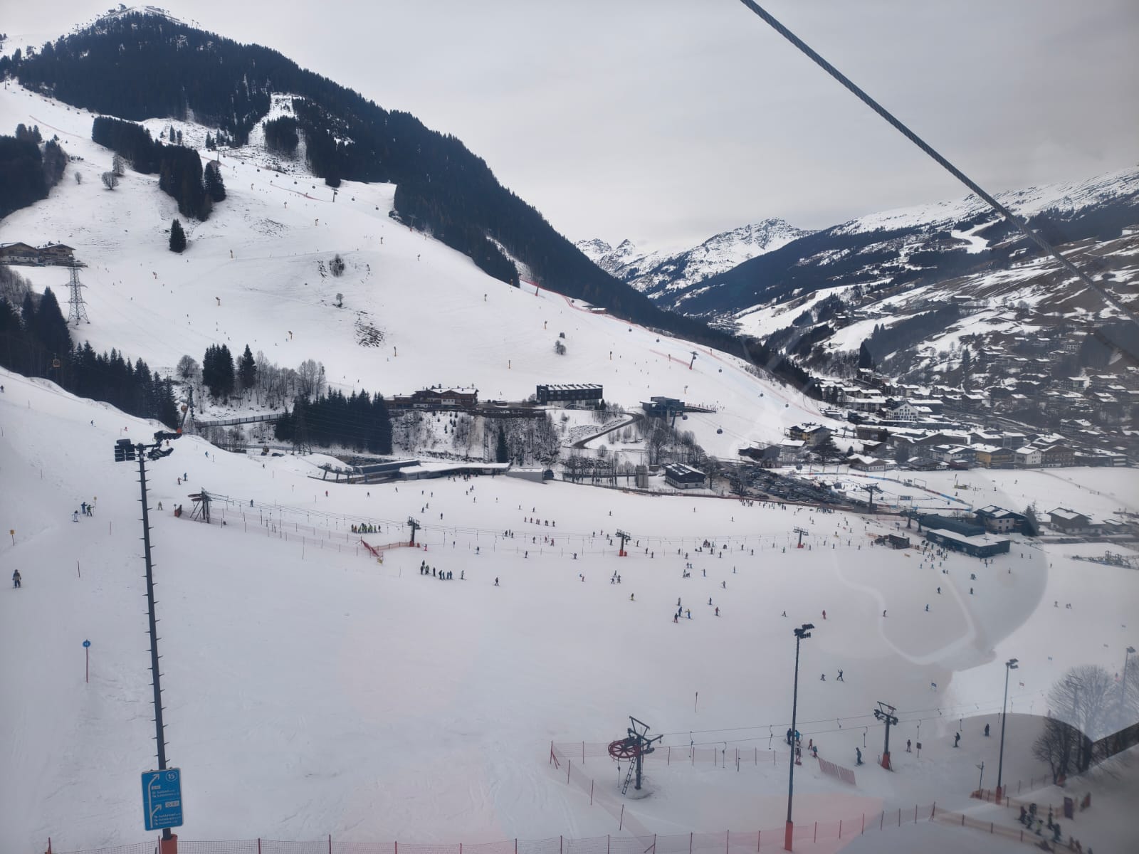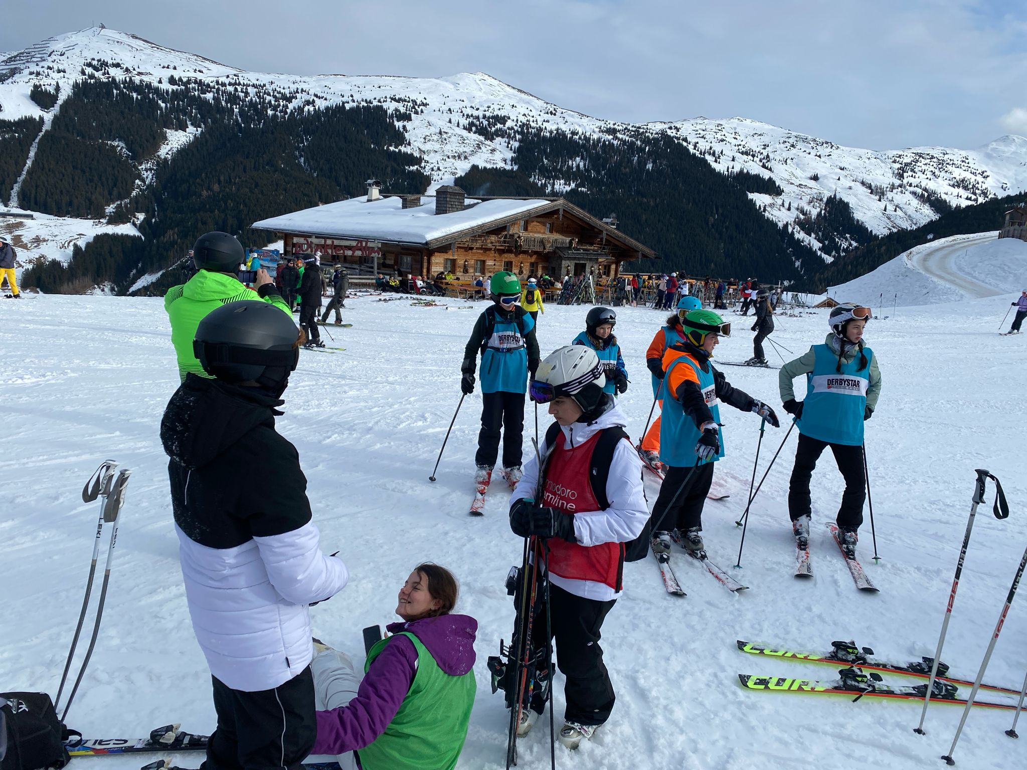 Dann sind wir um 8:05 Uhr in den Skiankleideraum gegangen. Anschließend sind wir zum Bus gelaufen. Nach der schönen Busfahrt sind wir in die 12er Kogel Bahn eingestiegen. Als wir ganz oben am Gipfel angekommen sind, sind wir erstmal die blaue Piste gefahren.