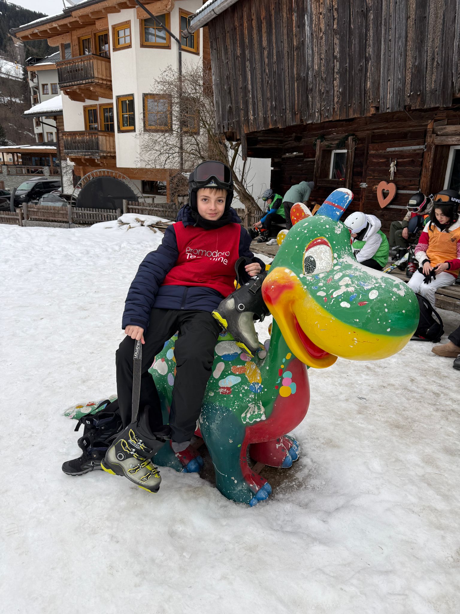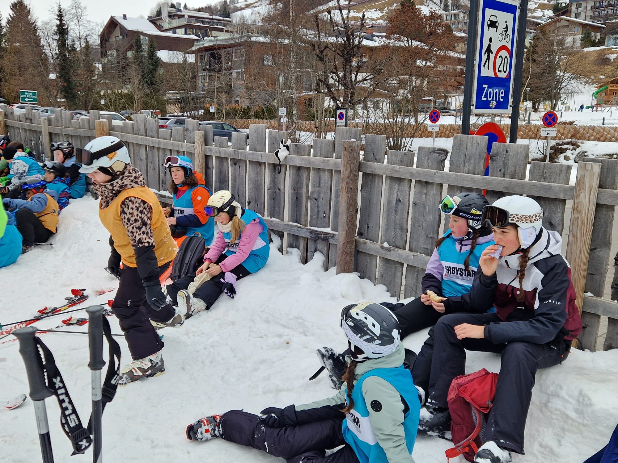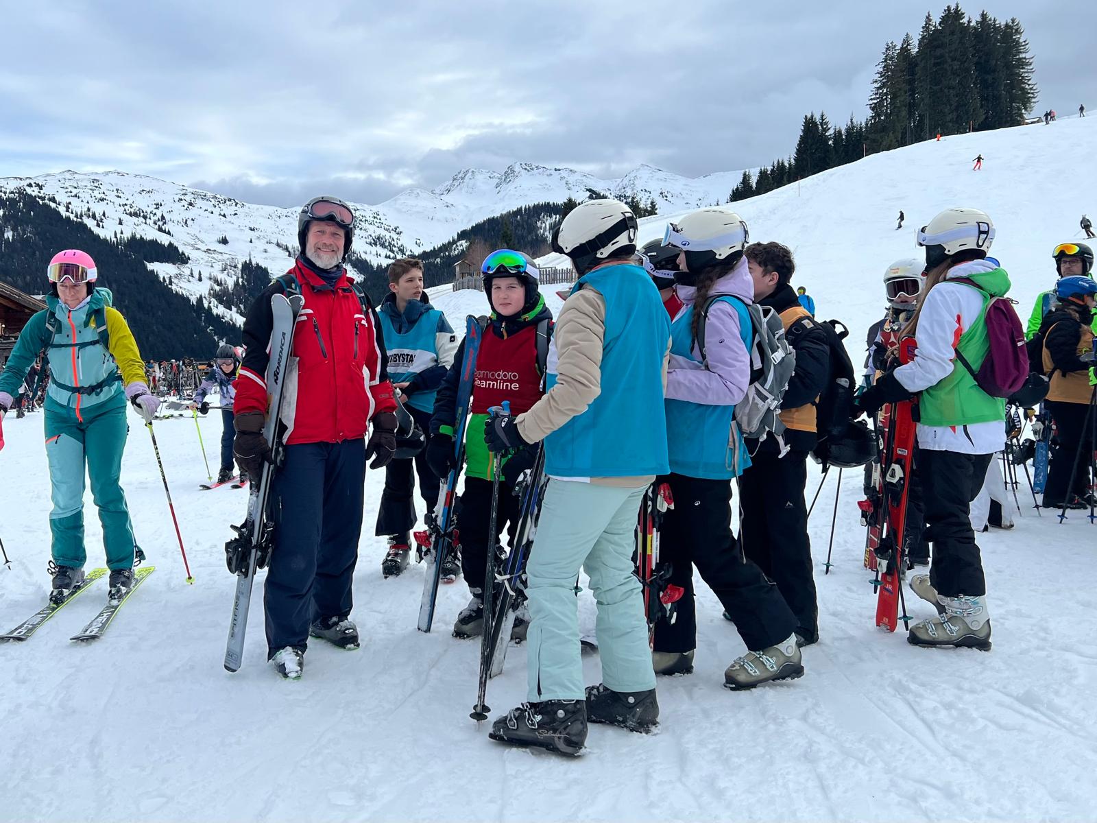 Heute sind wir um 7 Uhr aufgestanden. Nachdem wir uns für das Frühstück fertig gemacht hatten, sind wir direkt hinunter in den Skiraum gegangen. Dort haben wir unsere Skisachen geholt, damit wir auf die Piste konnten. Als wir dort angekommen waren, haben wir uns erst einmal warm gemacht. Irgendwann sind wir mit dem Tellerlift hochgefahren. Oben haben verschiedene Teams unterschiedliche Übungen absolviert. Wir wurden in diese Teams aufgeteilt, da wir für eine einzige Gruppe zu viele Personen waren. Später haben wir eine Pause gemacht, die ungefähr 45 Minuten dauerte. Danach sind wir alle wieder weitergefahren und manche sind auf eine große Piste gefahren und manche nicht, weil sie es sich noch nicht getraut haben. Dann war irgendwann 15.30 Uhr und dann sind wir nach Hause gefahren mit dem Skibus. Dann sind alle Duschen gegangen. Um 19 Uhr gab es Abendessen. Es gab Ratatouille mit Couscous und zum Nachtisch gab es Mango-Joghurt. Am Schluss haben wir einen Spieleabend gemacht.