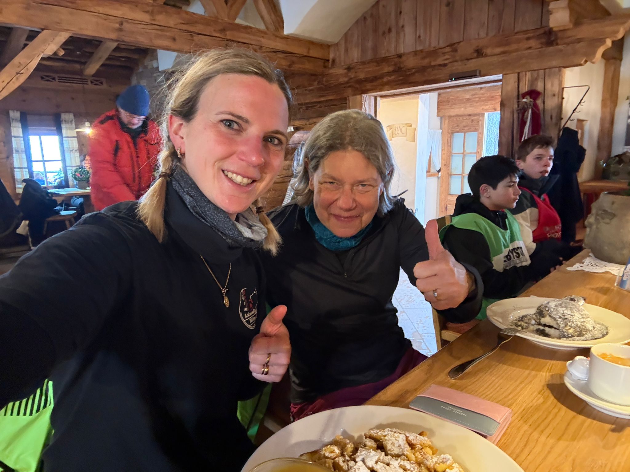 - Heute war ein noch besserer Tag, weil wir nochmal Ski gefahren sind. Wir sind sogar eine rote Piste gefahren, ohne hinzufallen. Wir sind das erste Mal einen Sessellift gefahren. Wir haben uns alle getraut von 2000 Metern runterzufahren. Zu essen gab es heute Reis und Curry-Hähnchen.